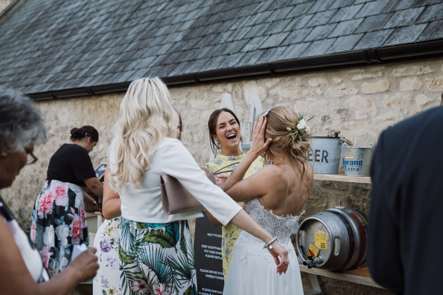 Stacey & Ally had an amazing day getting married at Ashley Wood Farm and what an epic wedding it was! It’s a beautiful set of buildings and cottages with a bit of French charm. Stacey wore a gorgeous Caroline Castigliano dress, with flowers in her hair from The Rose Shed.