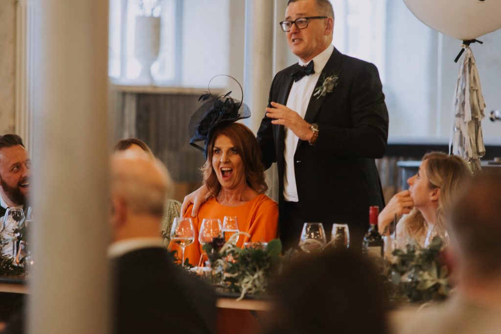 During the reception they had a live singer and guitarist Chris Stocks, which gave the afternoon a really chilled vibe. The guests all wandered upstairs to the main room, where it had been transformed! They had some lovely speeches before they sat down to eat, and for the wedding breakfast they had pie and mash, along with fish and chips and it was loved by all the guests!