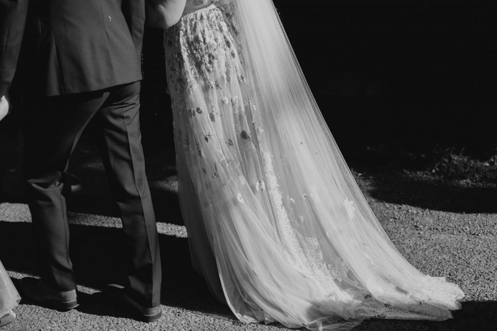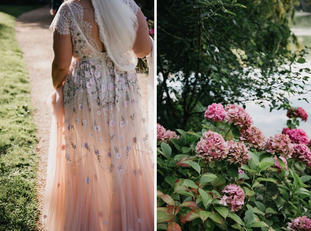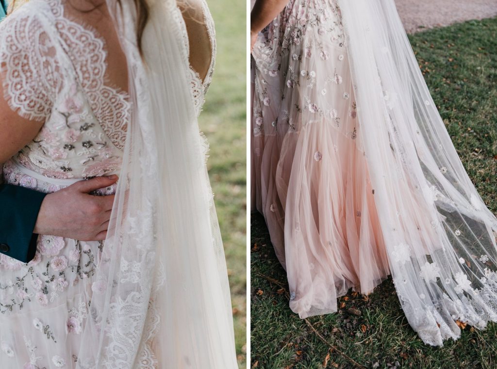 Emma Dee hand made the veil, using off-cuts from the alterations made to her dress so that Jess could have the magical, floral embroidered veil she had dreamed of. It was then edged with the same scalloped lace used to make the dress sleeves and neckline.